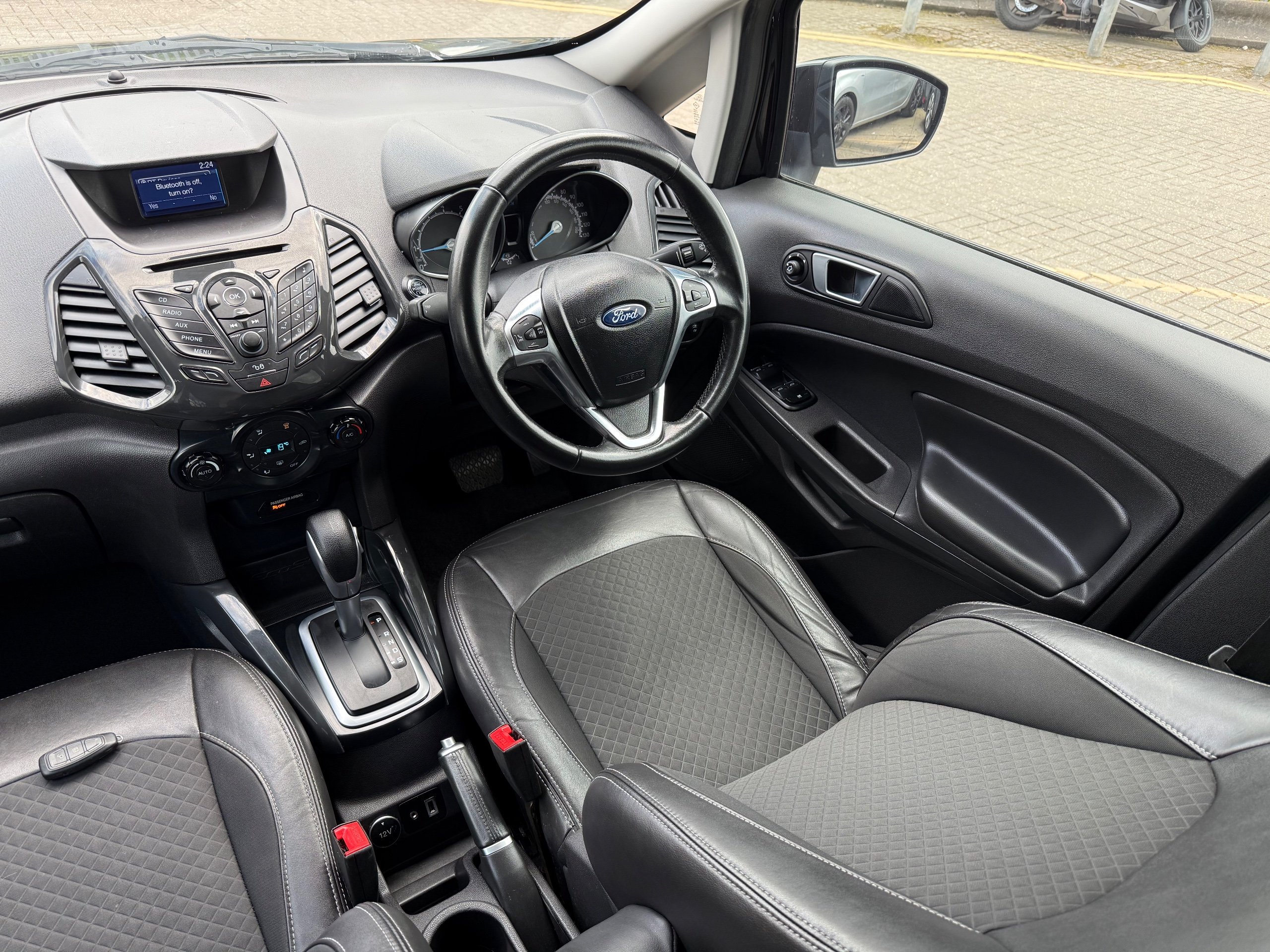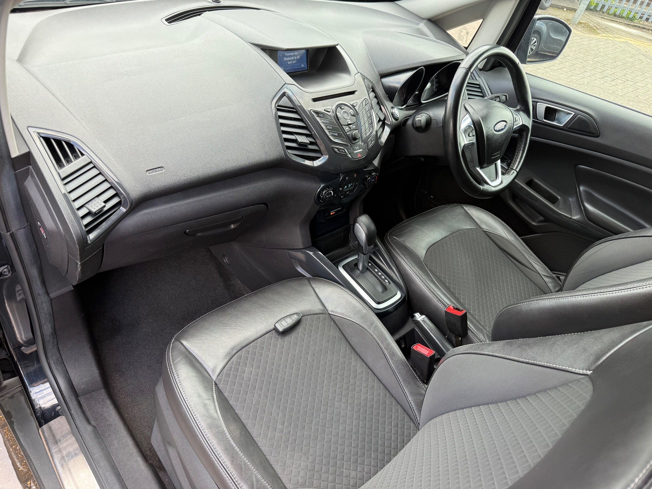 2 KEYS, ULEZ FREE, FRESH SERVICE (TOTAL 7 SERVICES), PARKING SENSORS, BLUETOOTH, MOT 22/12/2026, 3 FORMER KEEPERS. This 2016 Ford Ecosport 1.5 Titanium SUV with only 41309 miles on the clock is the perfect family vehicle, with 5 seats and 5 doors providing ample space for both passengers and cargo. Powered by a reliable petrol engine, this SUV is ULEZ compliant and comes with an MOT that doesn't expire until 22/12/2026. The car is equipped with convenient features such as a 12V Power Socket in the front, AUX and USB connections, and a Radio CD Player MP3 Compatible, ensuring a comfortable and enjoyable driving experience. Its sleek 17in Alloy Wheels and Euro 5 (112 ps) Powershift 2WD make it both stylish and efficient, ensuring a smooth and powerful ride.