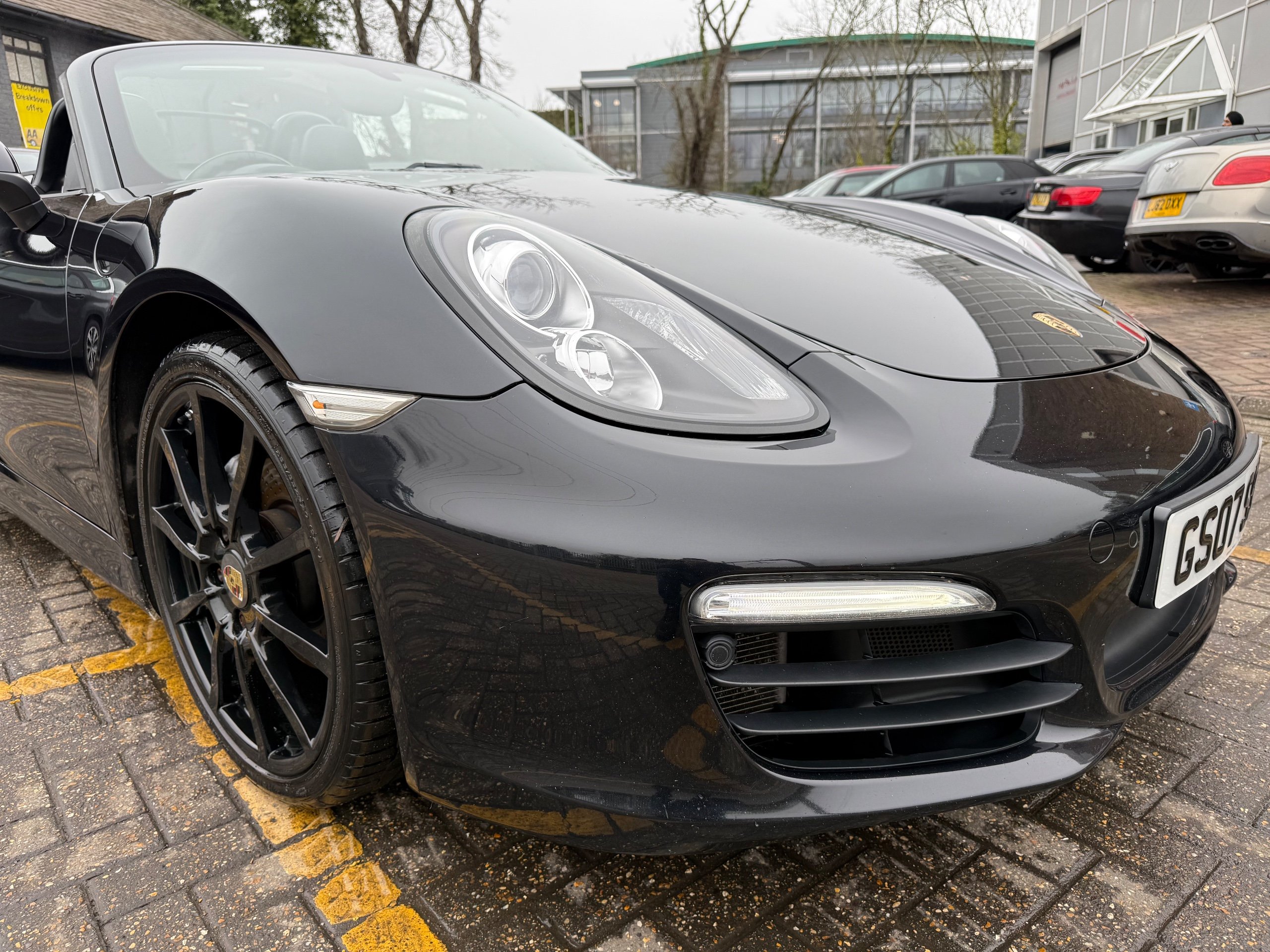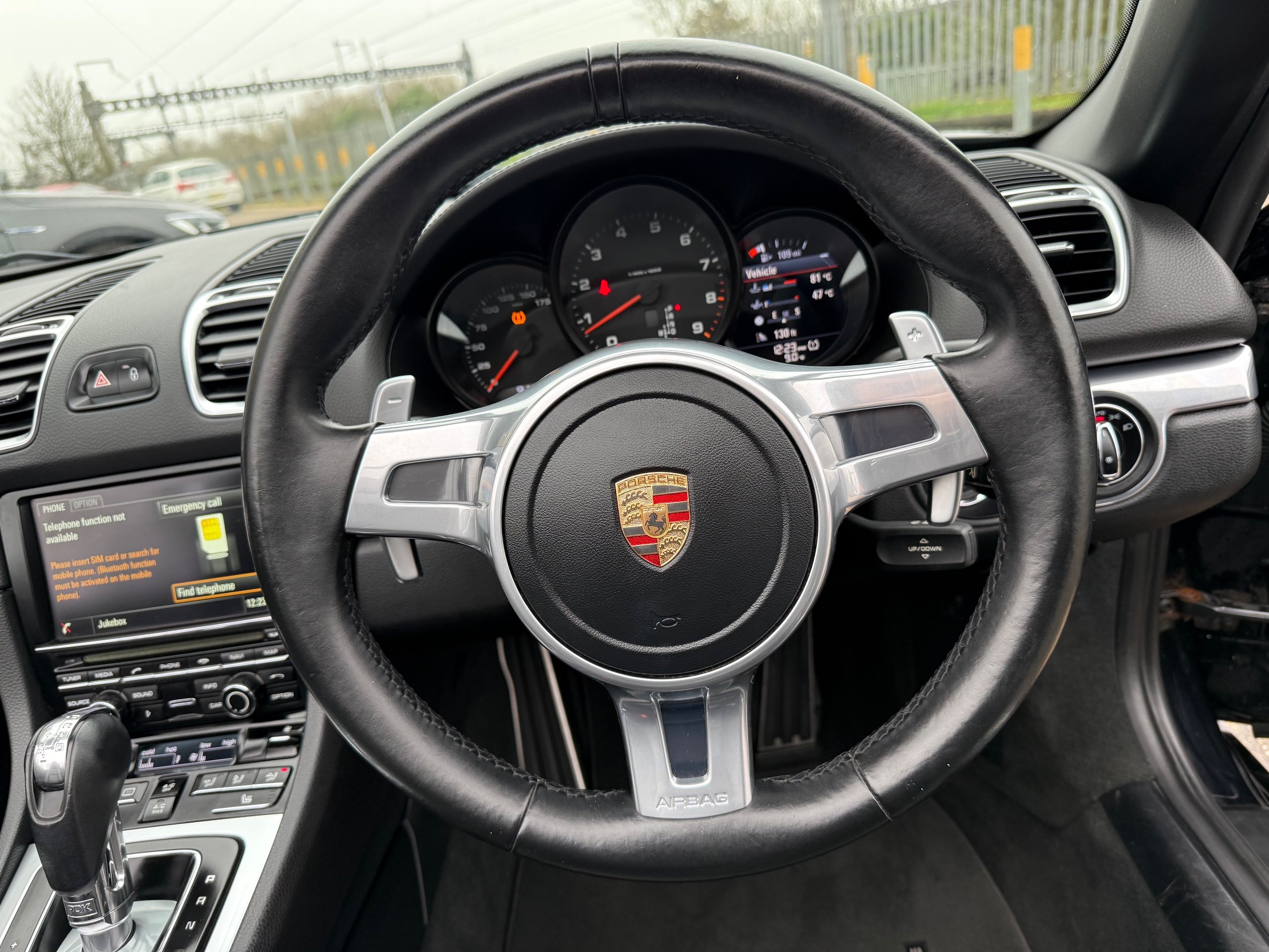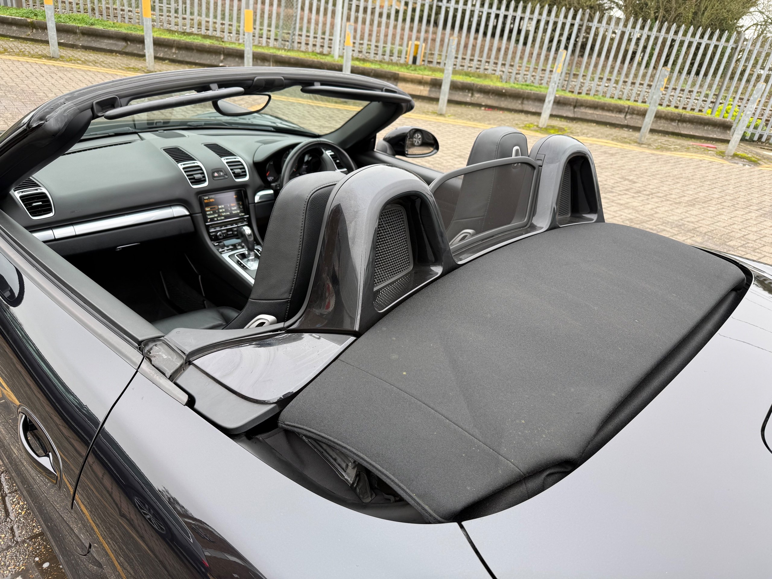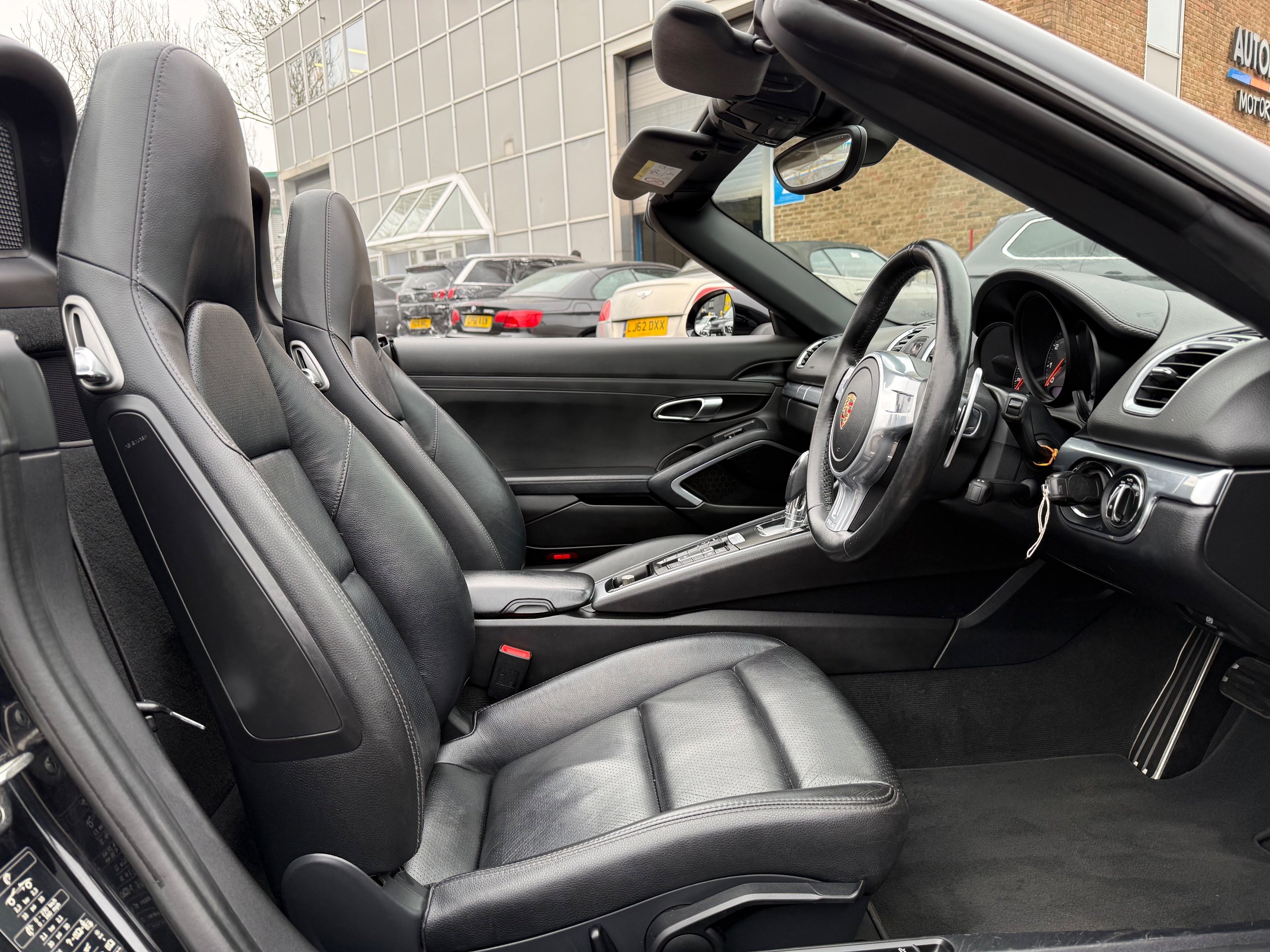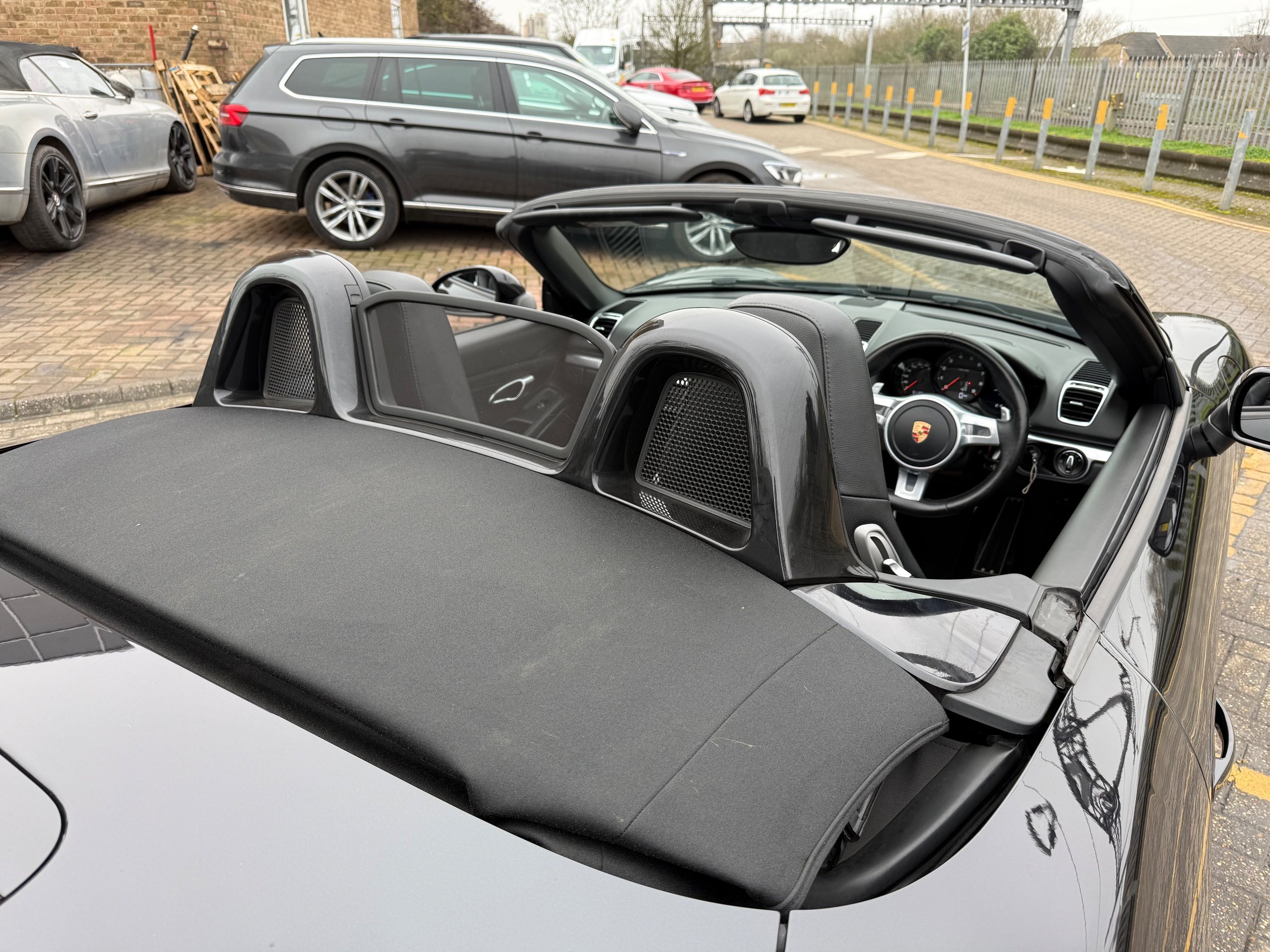 This 2015 Porsche Boxster 2.7 981 Convertible with a Petrol engine and PDK transmission has 91200 miles on the clock. It is ULEZ compliant and comes with an MOT that expires on 03/06/2026. The convertible has 2 doors, 2 seats and comes with features such as 18in Alloy Wheels, Aluminum Subframe at Rear, Auto-Deployed Rear Spoiler, and Auxiliary LED Light Modules in Front Apron Containing Daytime Running Lights and Position Lights. In addition, it has a bar in front of the front end air intake in black, making it a stylish and powerful vehicle perfect for those who love the open road.